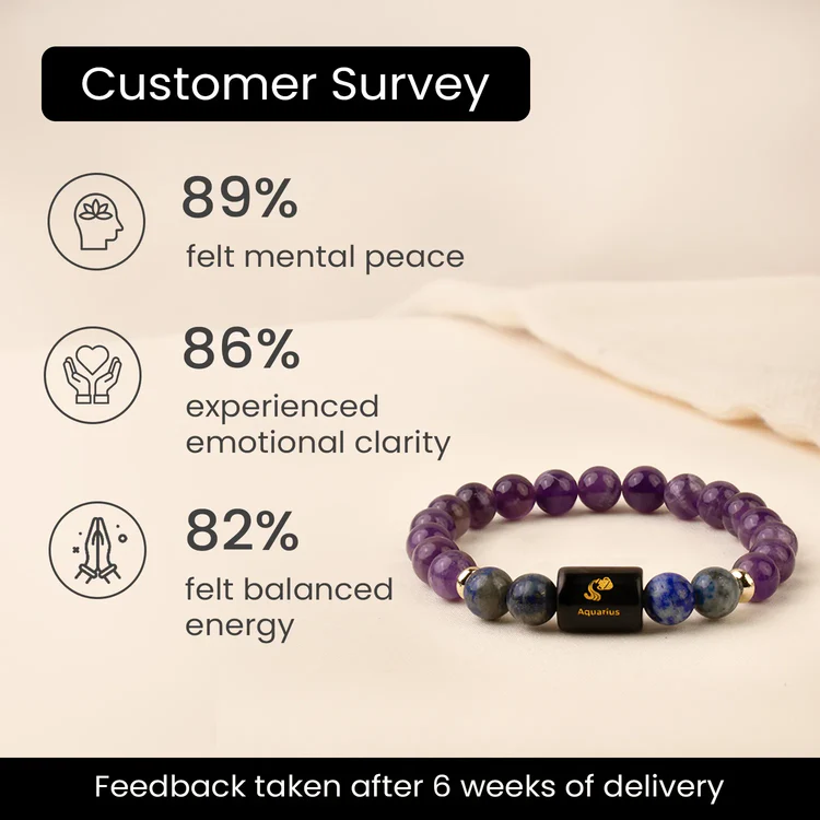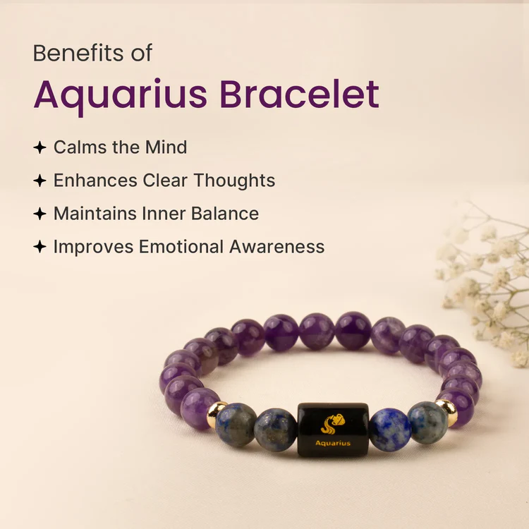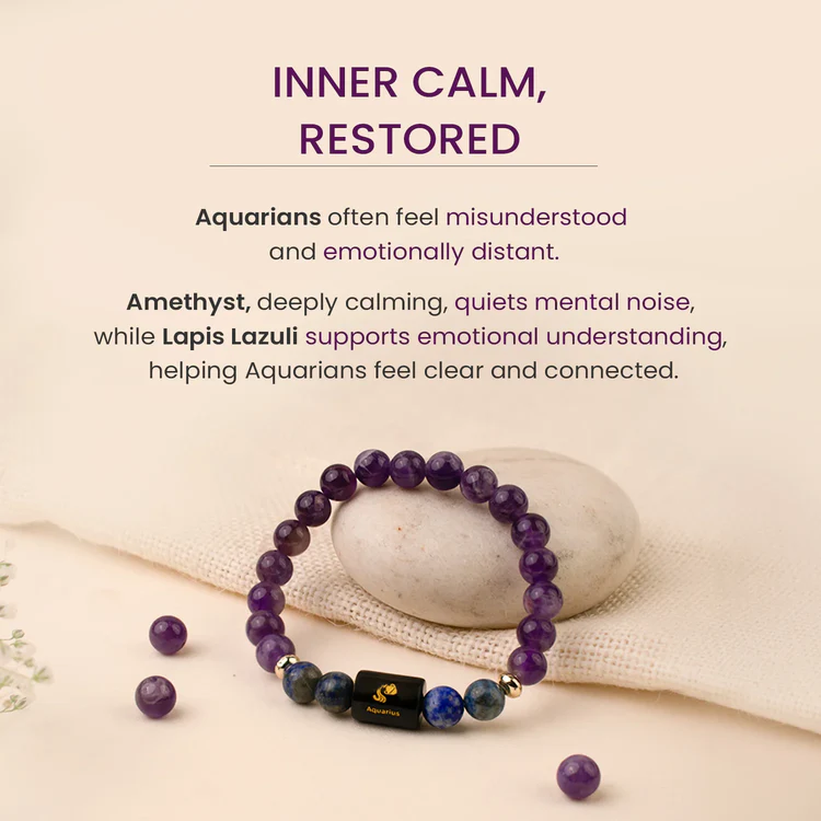 Aquarians are thoughtful, independent, and future-focused, but emotional disconnection, feeling misunderstood, or mental overload can sometimes affect balance and clarity. The Aquarius (कुंभ राशि) Zodiac Amethyst & Lapis Lazuli Bracelet is designed to support emotional clarity and mental calm.