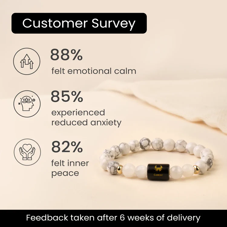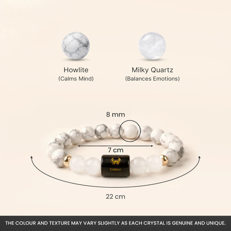 Cancerians are caring and deeply emotional, but giving too much can sometimes lead to feeling overwhelmed, anxious, or mentally tired. The Cancer (कर्क राशि) Zodiac Howlite & Milky Quartz Bracelet is designed to support emotional peace and inner comfort.